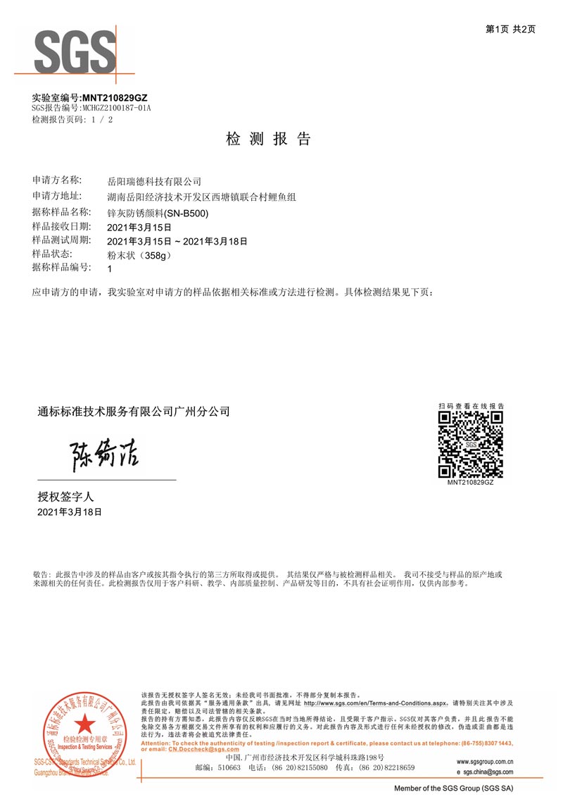本產(chǎn)品可完全取代云鐵、氧化鋅、次鋅粉、磷酸鋅等防銹顏料、也可與上述顏料搭配使用??刹糠秩〈\粉用于富鋅底漆。